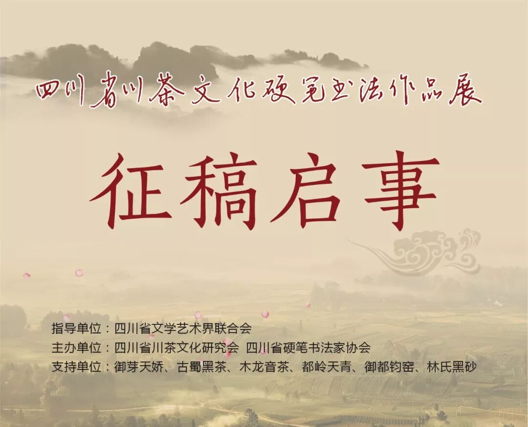 书法是五千年中华文明的载体与见证,茶文化与中华文明一样悠远,源起于茶祖神农(炎帝),传播于世界,“川茶三千年,自古甲天下”。为宣传贯彻党的十九大精神,坚持和实践“文化自信”,落实国家“一带一路”战略,提升川茶文化内涵,弘扬书法艺术,推动川茶和川茶企业的迅速发展,特举办"四川省川茶文化硬笔书法作品展"。