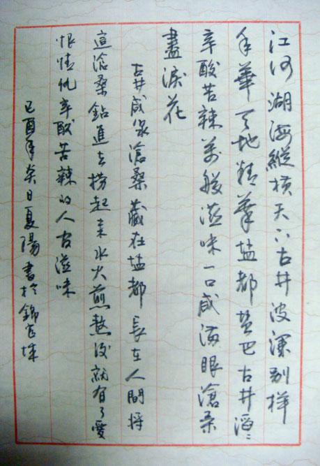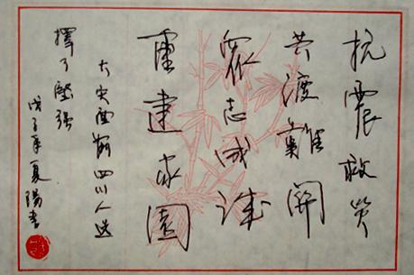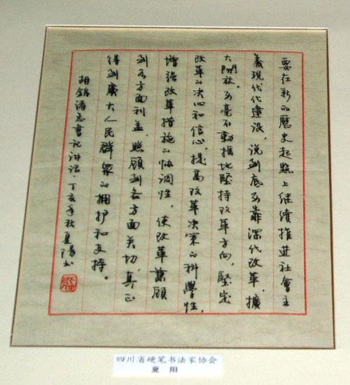 夏阳:男,五十年代末出生,重庆人,号紫雪斋主。现为四川省硬笔书法家协会副主席,四川省书法家协会会员。供职于四川省文化厅。